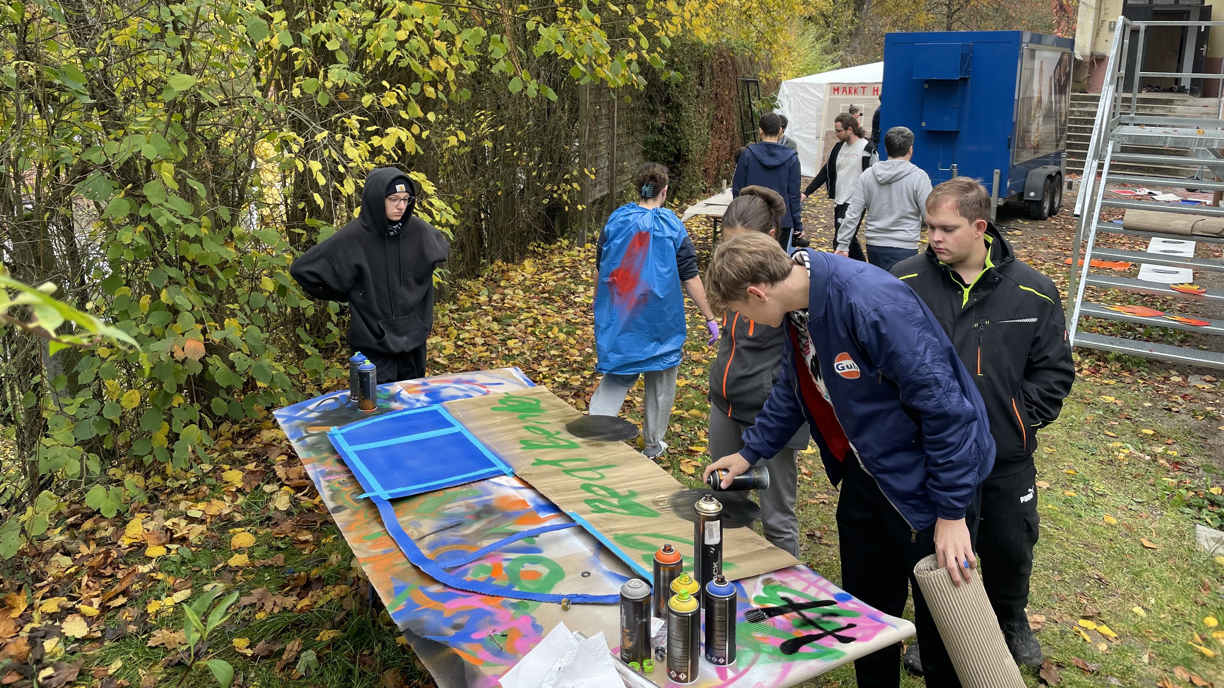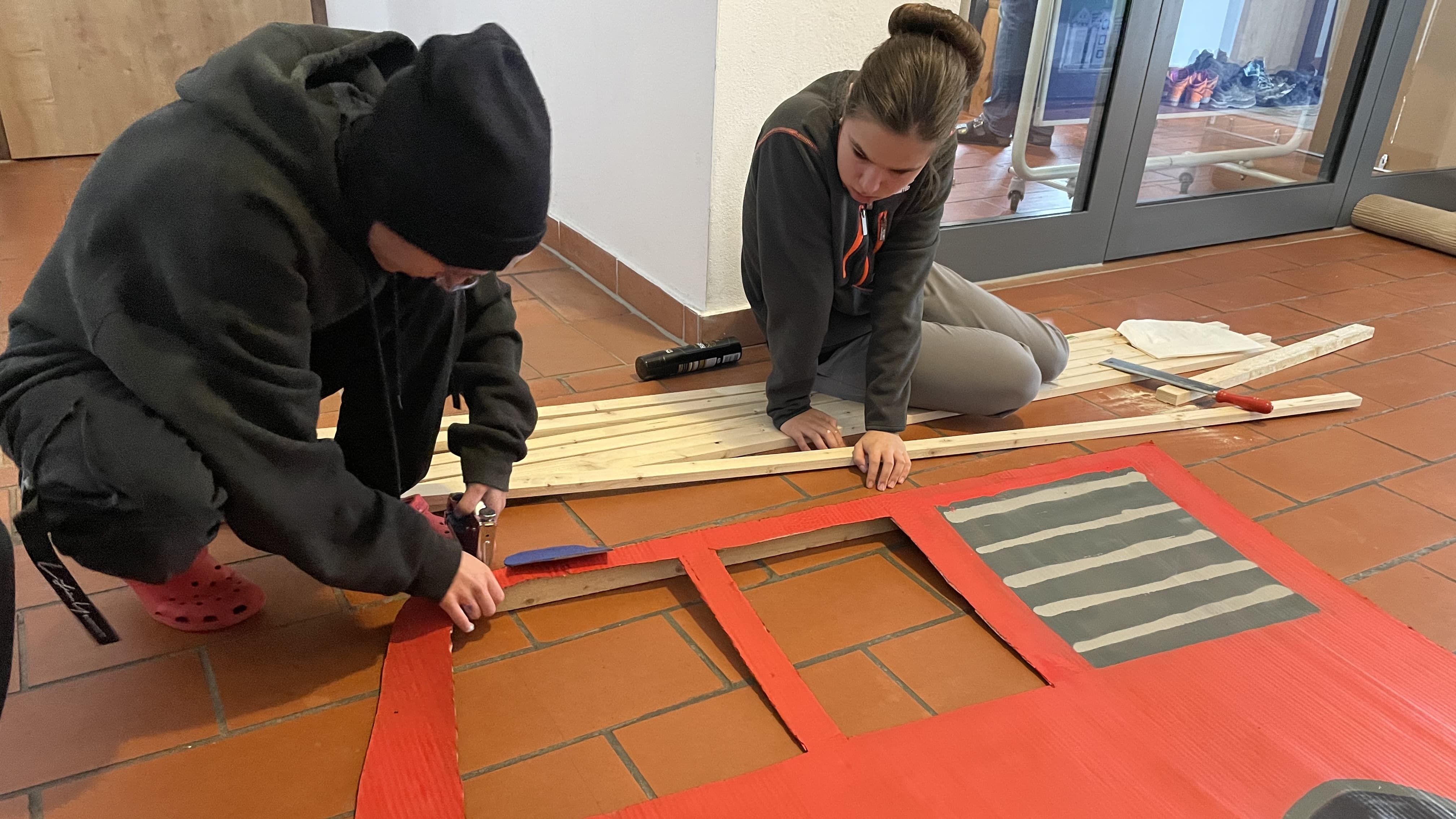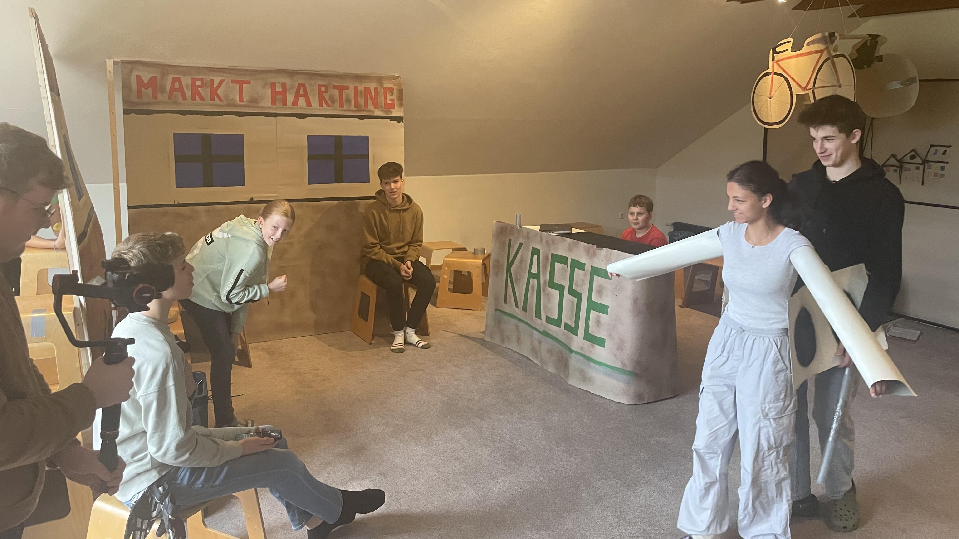 Noch am Nachmittag begannen die Vorbereitungen für ein Improtheater. Dabei mussten zehn Begriffe in einem Theaterstück zusammengeführt werden. In den nächsten Stunden entwickelten unsere Regisseure geistreiche Drehbücher und entwarfen Kulissen.